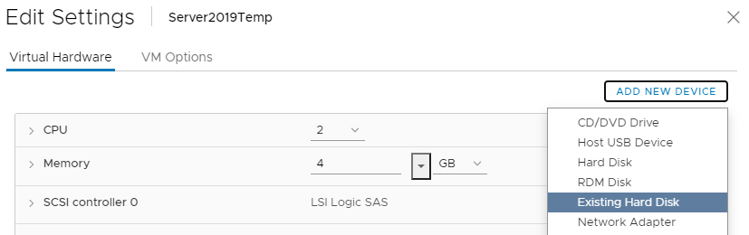 This is my personal preferred method! If I only need to modify the VM hardware version, this is my go to. This involves creating a new VM with no hard disks and then attaching the disks from the original VM. This approach is particularly useful when your VM has large disks. Lets go through the process.