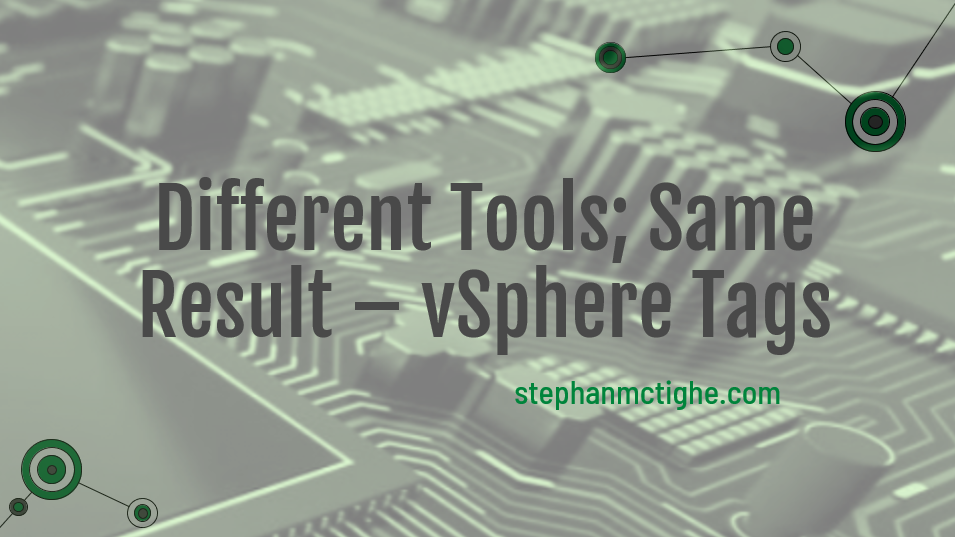 Following the last blog post on create vSphere Port Groups, let’s take a look at creating Tags and Tag Categories.