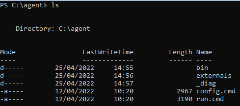 1Add-Type -AssemblyName System.IO.Compression.FileSystem ; [System.IO.Compression.ZipFile]::ExtractToDirectory("C:\temp\vsts-agent-win-x64-2.202.1.zip", "$PWD")