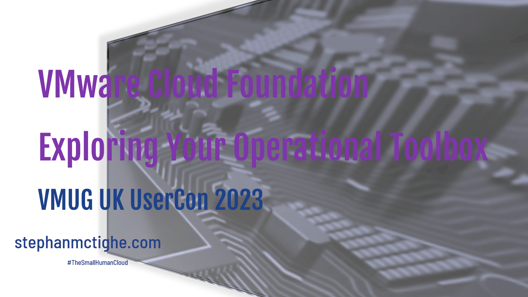 This last week I had the opportunity to present a session at the VMUG UK UserCon with friend and colleague, James T. The session built on a previous session we did, diving deeper into some of the technical aspects and use cases of some of the tools available to help you manage your VCF platform.