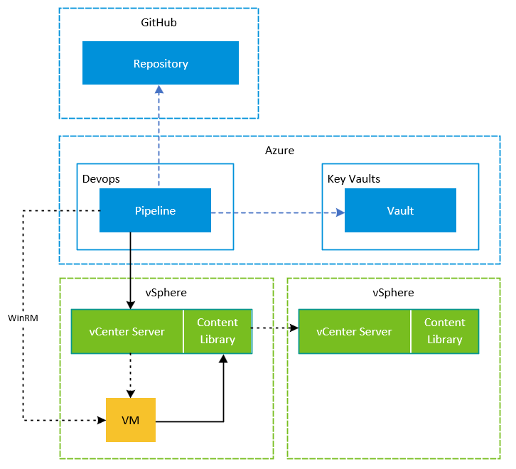 This solution makes use of Azure DevOps Pipelines, Azure Key Vault and HashiCorp Packer to schedule and orchestrate the building of new virtual machine templates in VMware vSphere.
