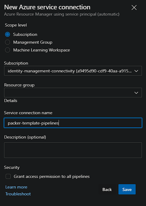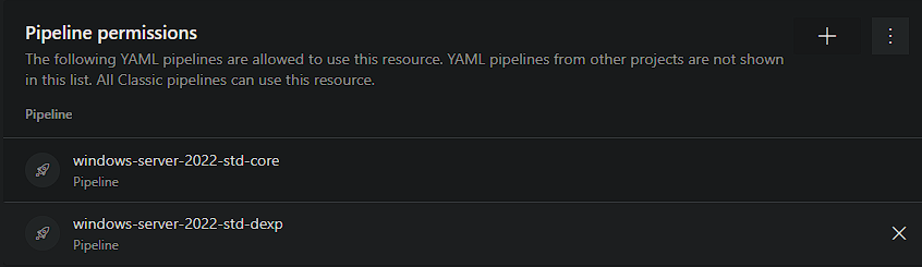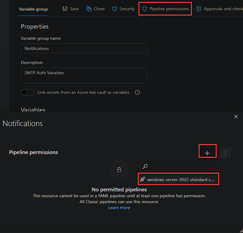 We then need to grant the Pipeline permissions to this variable group. You will need to add any Pipeline you want to have access to these variables.