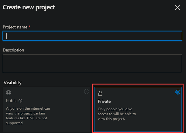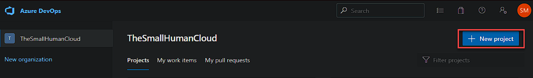 First lets create a DevOps Project by heading over to dev.azure.com and clicking on New Project.