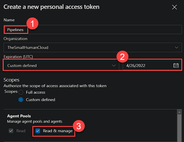 Now before we run the configuration file, we need to create a PAT (Personal Access Token) for use during the install only, it doesn’t need to persist past the install.