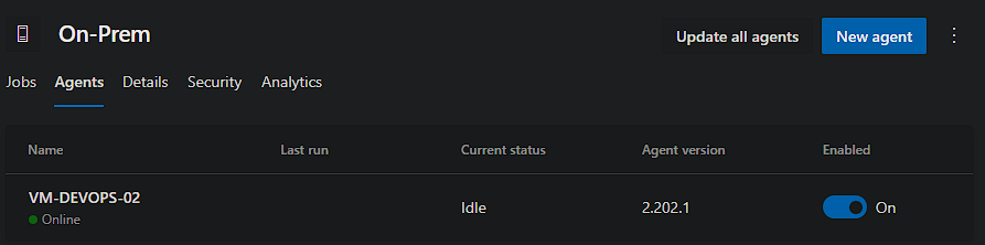 Now if we head back over to the Project’s Agent Pool, you will see its active!