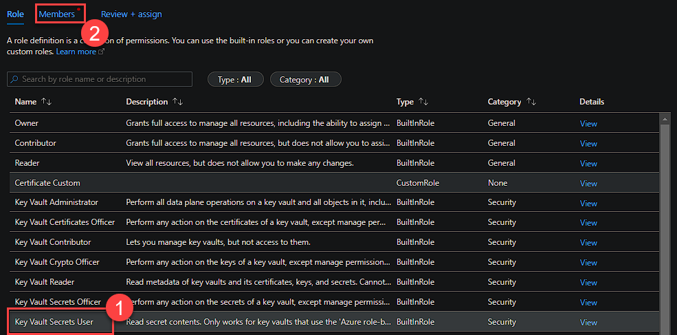 To configure this, select a secret and then open the IAM interface. Select the ‘Key Vault Secret User’ Role and then click members.