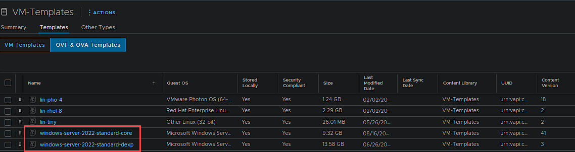 Now you can head over to your content library and you will see your template. Below are both my Windows Server 2022 builds.