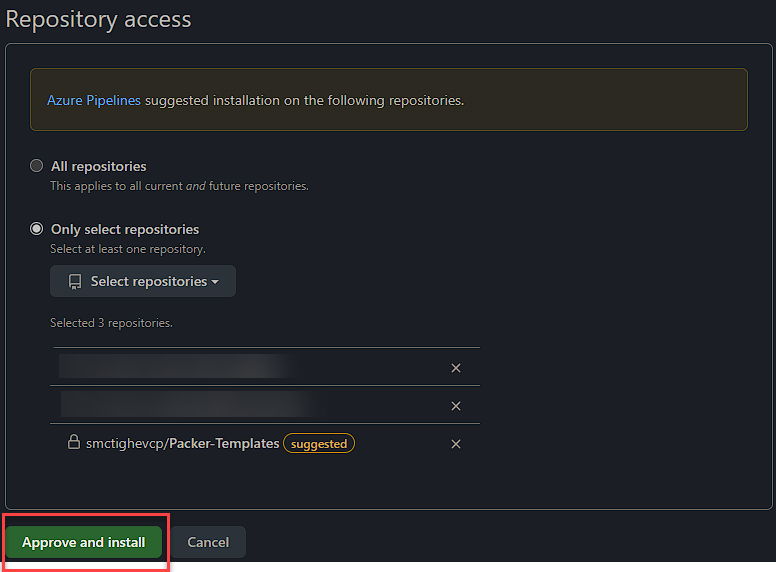 Next you need to provide and approve access for Azure Pipelines to the repository you selected.