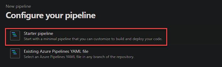 Now to create the first pipeline YAML file. Select Starter Pipeline.