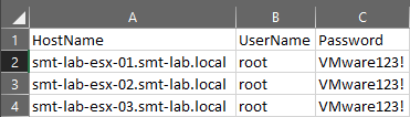 $Hosts = Import-Csv C:\ESXiHosts.csv