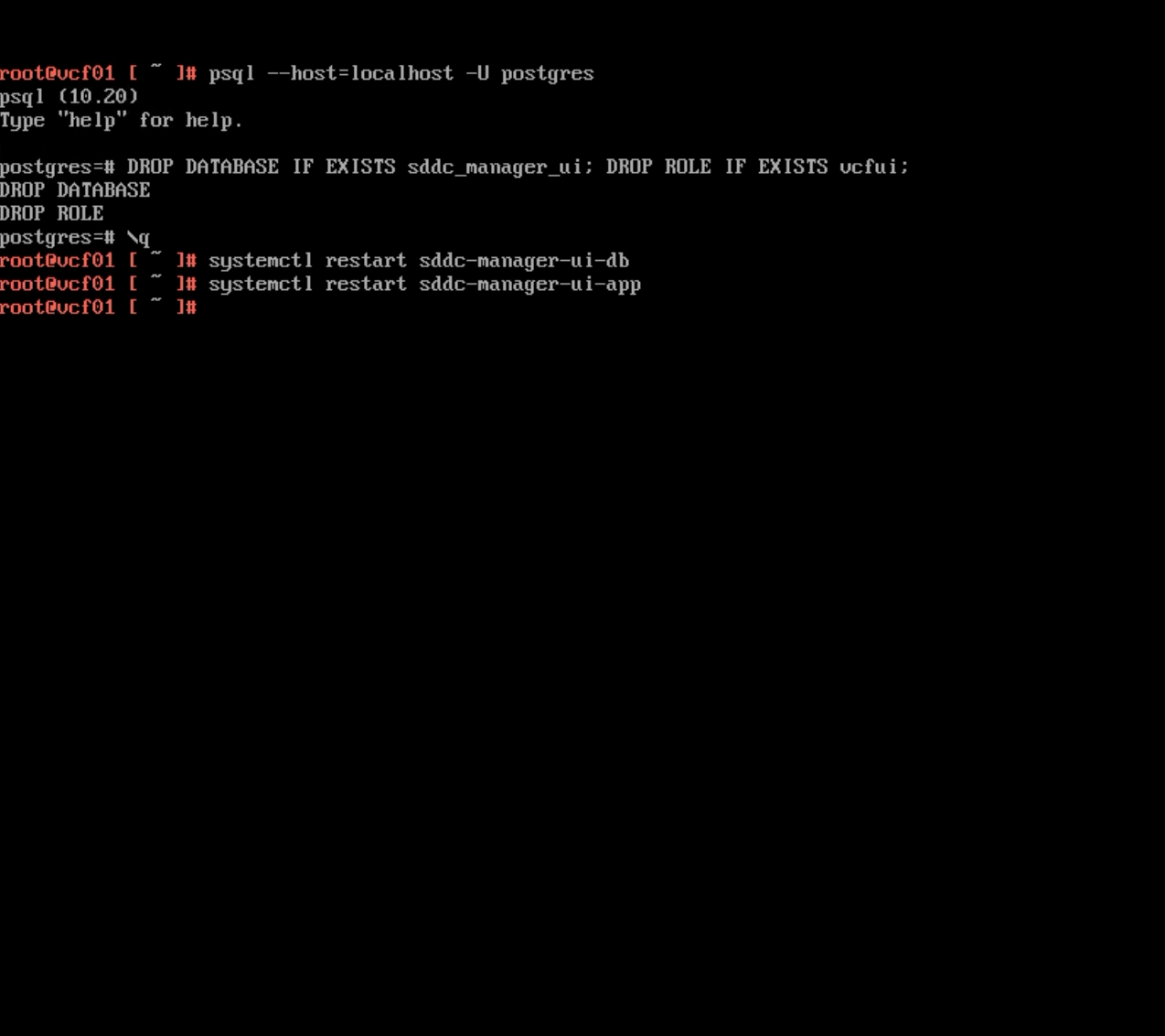 'Session middleware wrapper failed to initial and all retry attempts. Cannot continue. Throwing error from session middleware - password authentication failed for user "vcfui"'