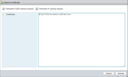 Select Import new certificate then select either ‘Generate FQDN signing request’ or ‘Generate IP signing request’.