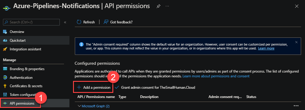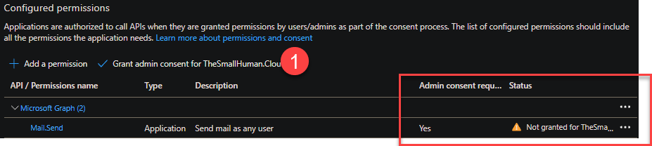 You will then notice that it require Admin consent. Click the Grant consent for ‘org’ option and confirm the prompt.