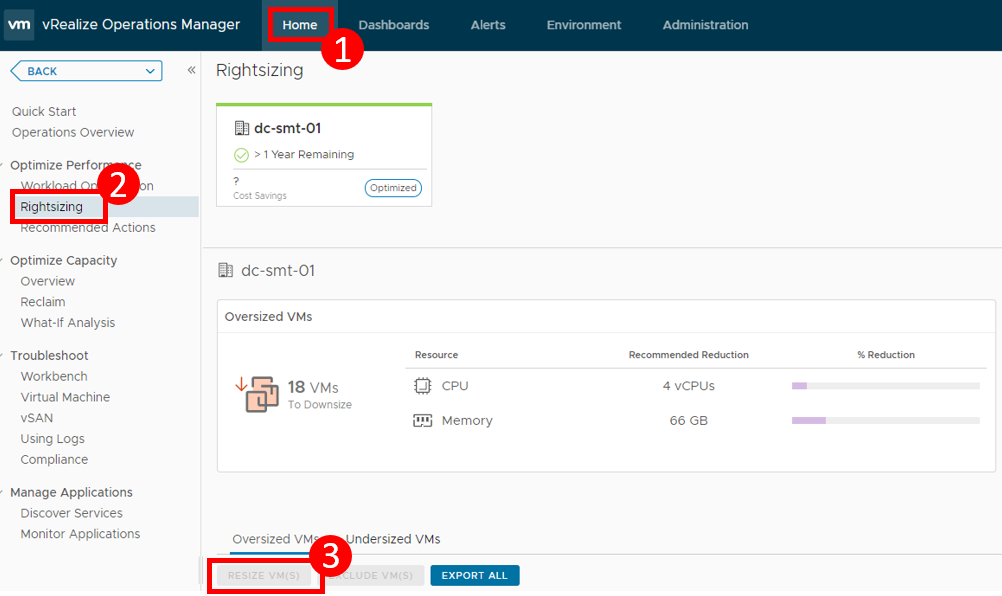 Enabling VM Rightsizing in vRealize Operations Manager (vROPS)
