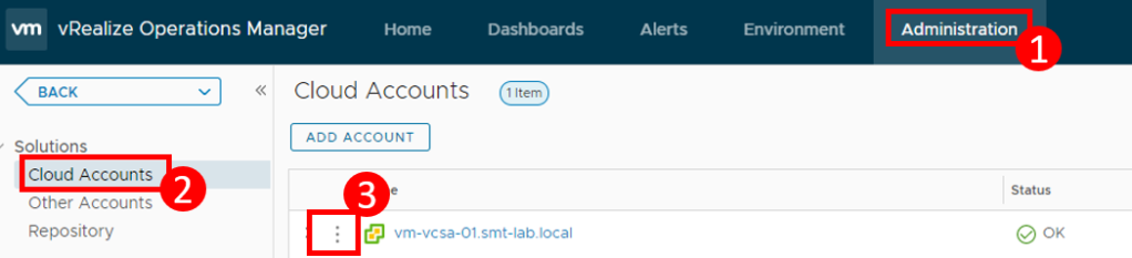 You can check this by heading to Administration, Cloud Accounts and then select the three ‘dots’ next to the connection you want to check, or enable it for.