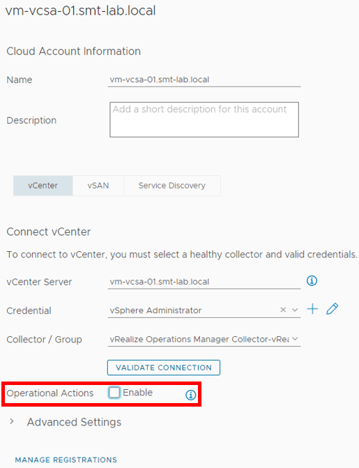 This feature is something that you need to a enable for a connection or ‘Cloud Account’. In this instance, this is my connection with vCenter.