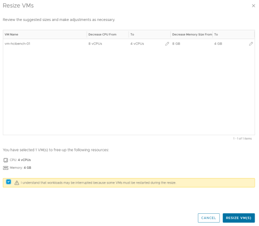 Now if you head back to the rightsizing section, you will see that you have the option to resize the VM’s (for the connection or Cloud account you have enabled it for). One thing to note, the account you have used for the credentials on this connection require the appropriate privileges to modify the VM’s!