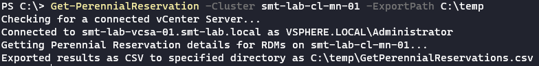 Get-PerennialReservation -Cluster smt-lab-cl-mn-01 -ExportPath C:\temp