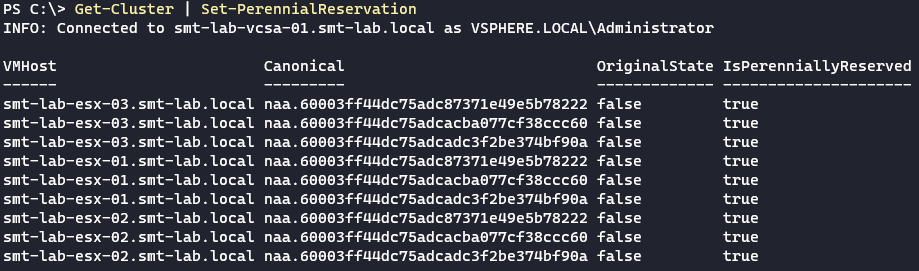 Get-PerennialReservation -Cluster smt-lab-cl-mn-01 -CanonicalName naa.60003ff44dc75adcacba077cf38ccc60