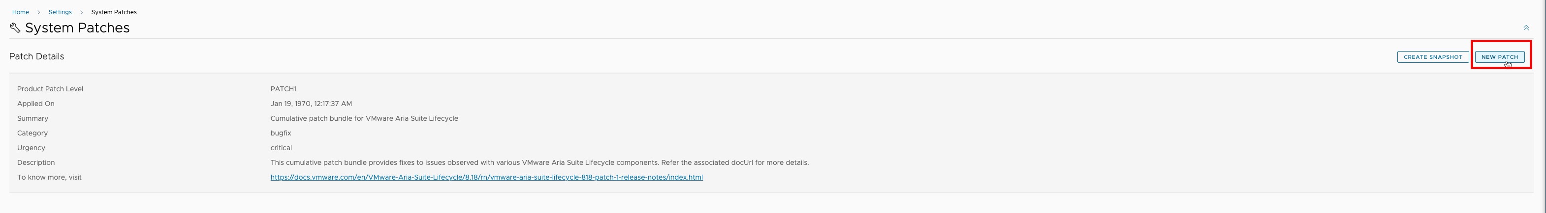 Once back up you can check back in System Patches to confirm it has applied correctly.