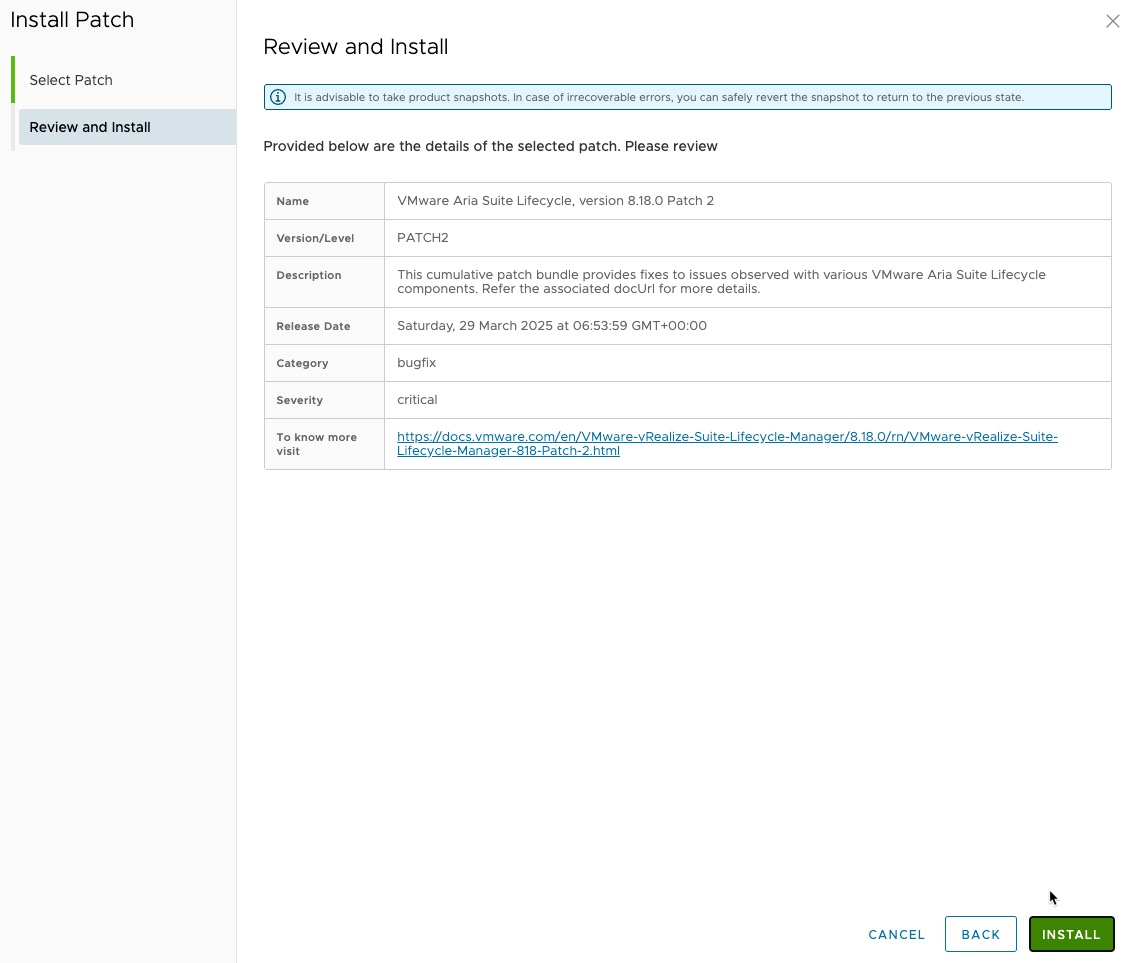 With the new announcement of VCF 9, I like many others, was ready and eager to upgrade my lab. As part of this there is a requirement to apply a patch to Aria Suite Lifecycle Manager to enable you to upgrade VCF Operations from 8.18 to 9.0 and install the new VCF Operations Fleet Management appliance. I thought I would share this process with you.