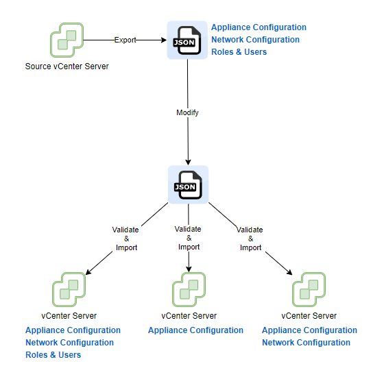 vCenter Server Profiles (Section 7.2.4 Configure VMware vCenter Server® profiles in the Exam Blueprint) were first introduced in vSphere 7.0. These addressed the challenges around configuration consistency in large multi vCenter environments by allowing a ‘base’ or ‘source’ vCenter configuration to be exported, modified and imported into multiple other vCenter’s.