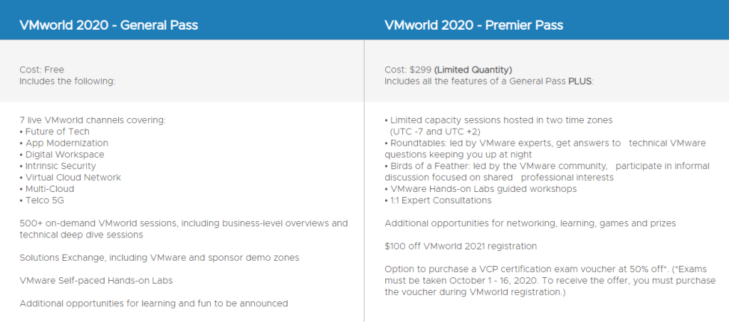 Don’t waste the opportunity! Head over to the website to register for this years VMWorld 2020! - https://www.vmworld.com/en/index.html. This years event is being held from 29th September to 1st October inclusive.