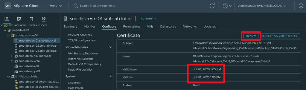 If you want to do this renewal via PowerCLI (because…well why wouldn’t you!?) there is a nice function here by Ankush Sethi which does a great job.